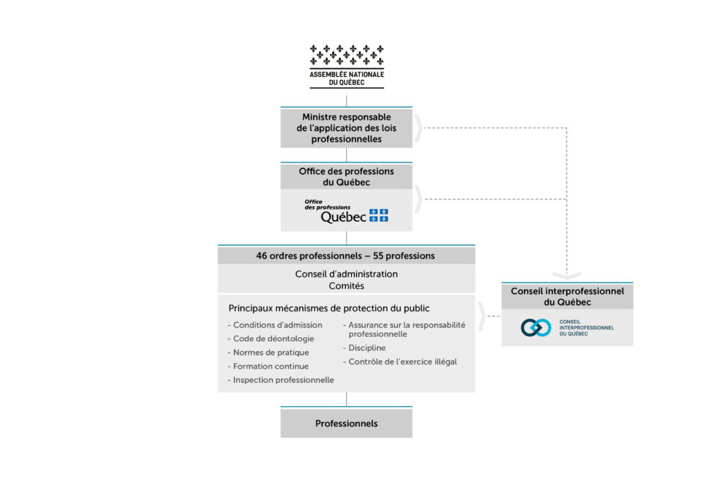 Le système professionnel québécois joue un rôle central dans la protection du public. Il regroupe l’ensemble des institutions qui encadrent l’exercice des 55 professions reconnues au Québec et fonctionne sous l’autorité du Code des professions.